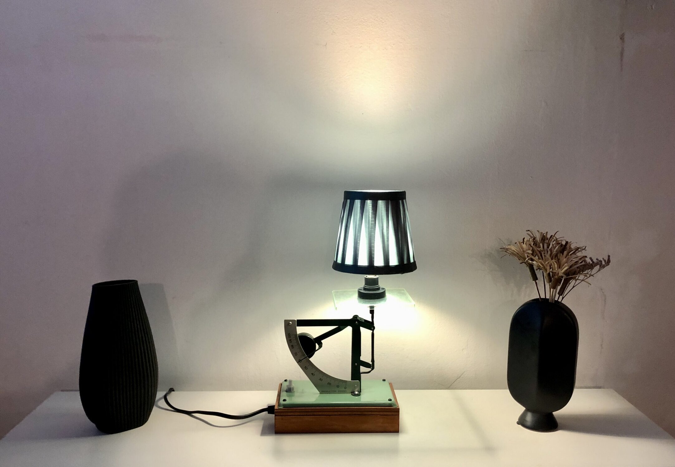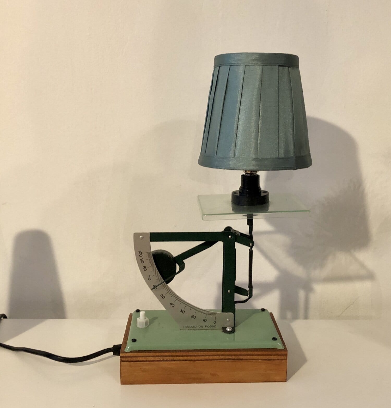 Balance pèse lettre des années 70″ transformé en lampe à poser.